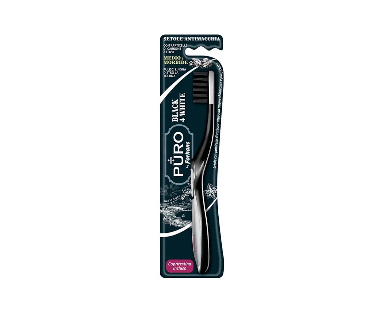 Зубна щітка Puro by Forhans Black4White З щетинками з активованого вугілля (8002185076407)