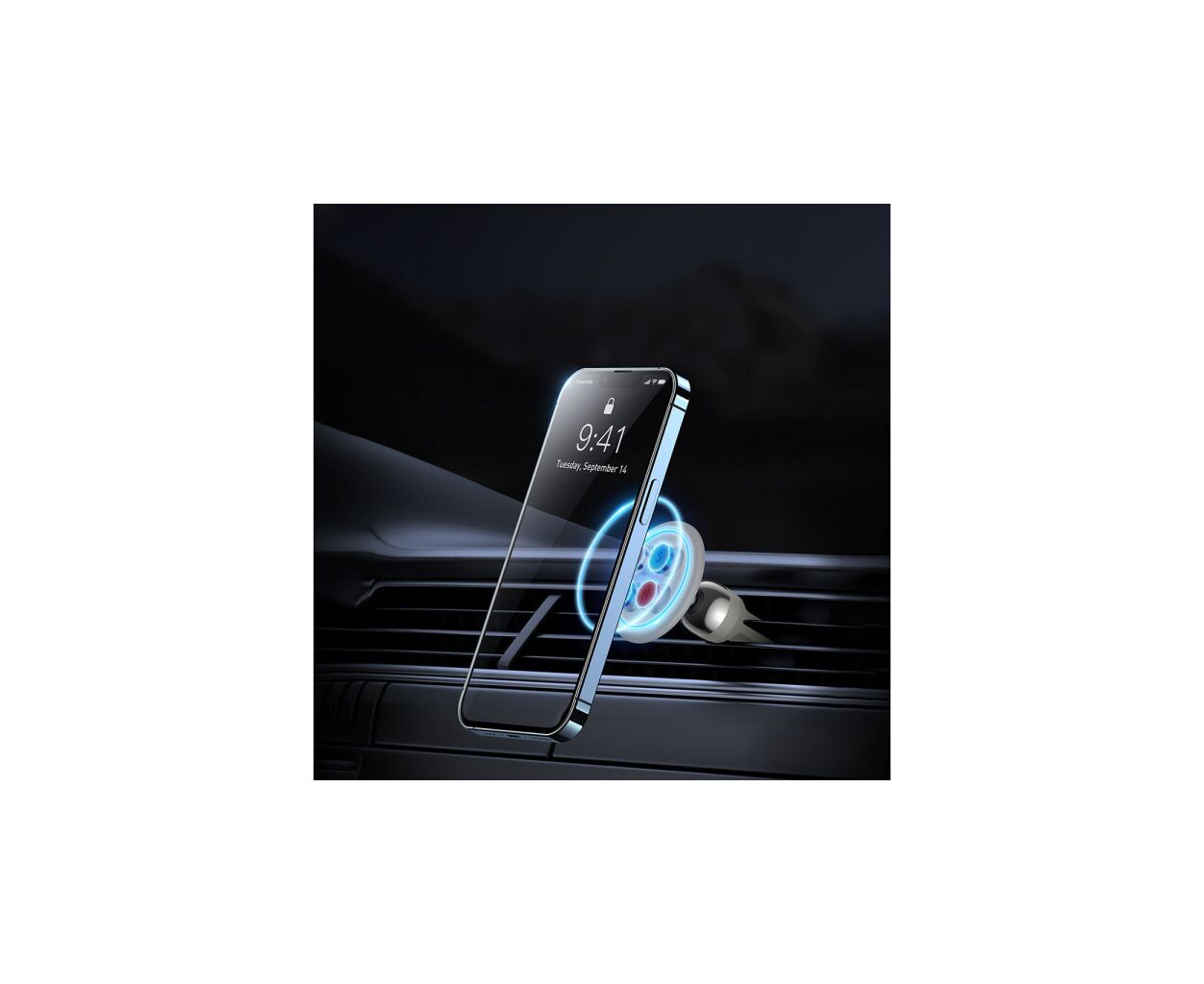 Автомобильное крепление Baseus Magnetic устанавливается на вентиляционную решетку и позволяет свободно общаться, пользоваться навигацией или слушать музыку с мобильного телефона, находясь в дороге за рулем автомобиля. Такое размещение смартфона не будет перекрывать водителю обзор дороги.