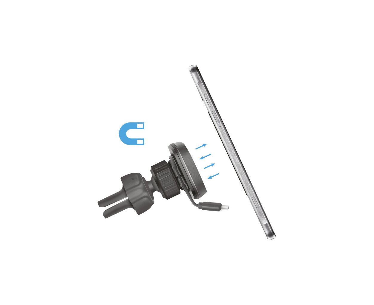 - Надежная фиксация мобильного устройства на магнитной поверхности держателя даже при движении автомобиля по неровной дороге