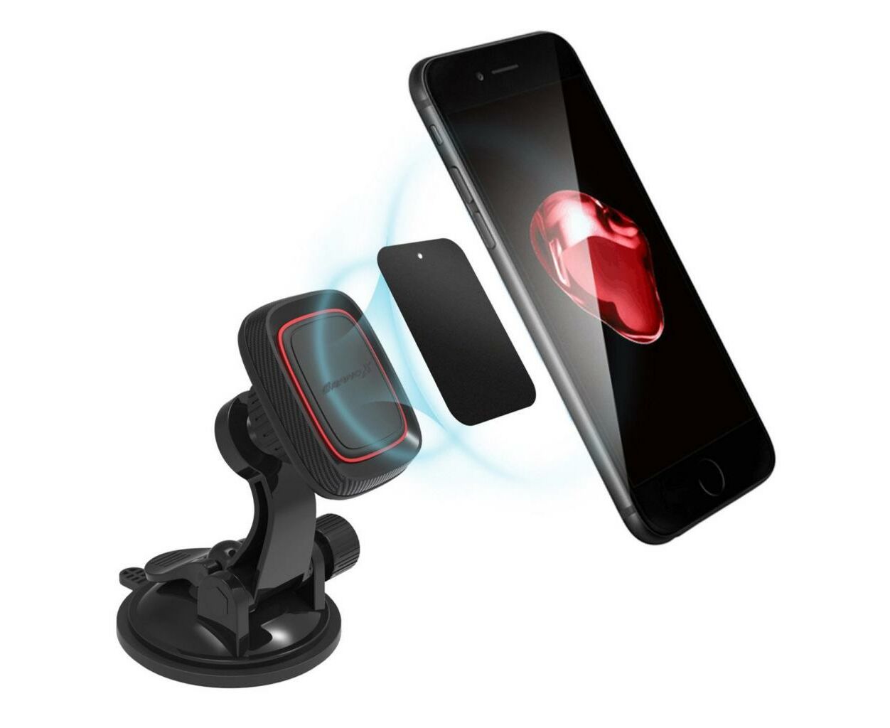Назначение - для телефона, Место установки - торпеда, лобовое стекло, вакуумная присоска, Тип крепления девайса - магнит, Беспроводная зарядка - нет, 360°