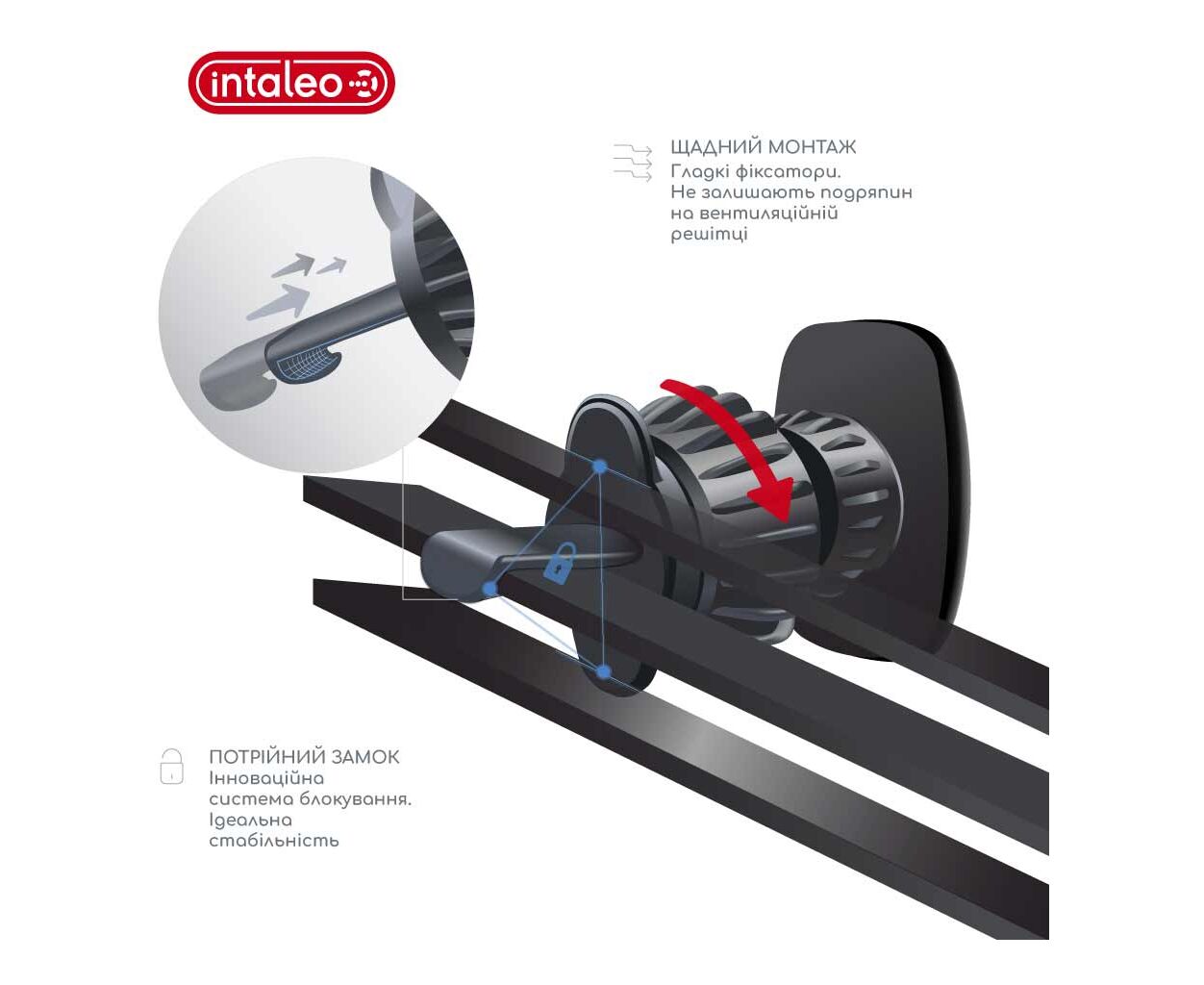 Компактный универсальный магнитный автодержатель Intaleo CM05GG – удобно и безопасно крепится на решетке вентиляции передней панели автомобиля с учетом оптимального угла наклона. Достаточно просто приложить устройство к держателю. Автодержатель имеет 6 мощных магнитов, поэтому устройство крепко и надежно фиксируется на держателе с помощью металлической пластины, которую можно закрепить на самом устройстве или на его чехле. Держатель оснащен прорезиненной головкой, которая имеет угол оборота в 360 градусов, позволяя использовать смартфон в любом удобном положении.