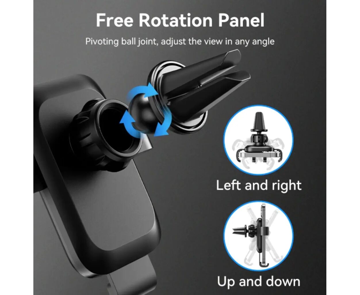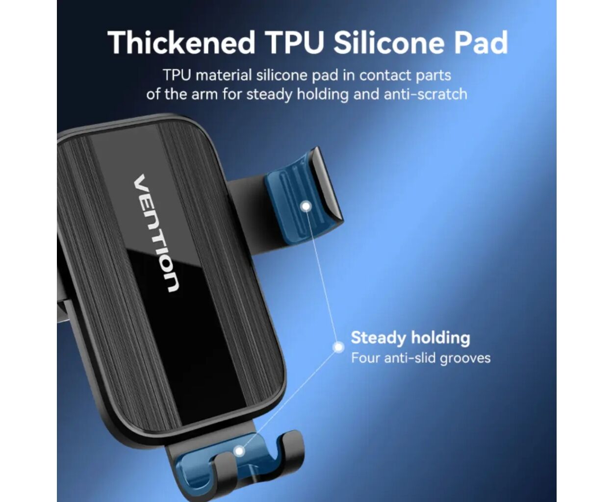 Автодержатель для телефона на дефлекторе Vention - Надежная 3х контактная фиксация. Автодержатель надежно крепится к дефлектору. Совместим с телефонами 4,7-7,2 дюйма. Крепление глубиной 12 мм отлично подходит для телефона с чехлом.