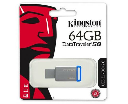 Высокая скорость интерфейса USB 3.1 Gen 1 (USB 3.0) обеспечивает быструю передачу музыки, видео и других данных. Для удобства использования накопитель совместим с портами USB 2.0. Кроме того, имеется возможность добавления логотипа клиента и/или цифровых файлов. DT 50 имеет пятилетнюю гарантию, бесплатную техническую поддержку и отличается легендарной надежностью Kingston.