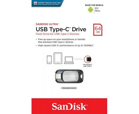 Описание USB флеш накопитель SanDisk 64GB Ultra Type C USB 3.1 (SDCZ450-064G-G46)