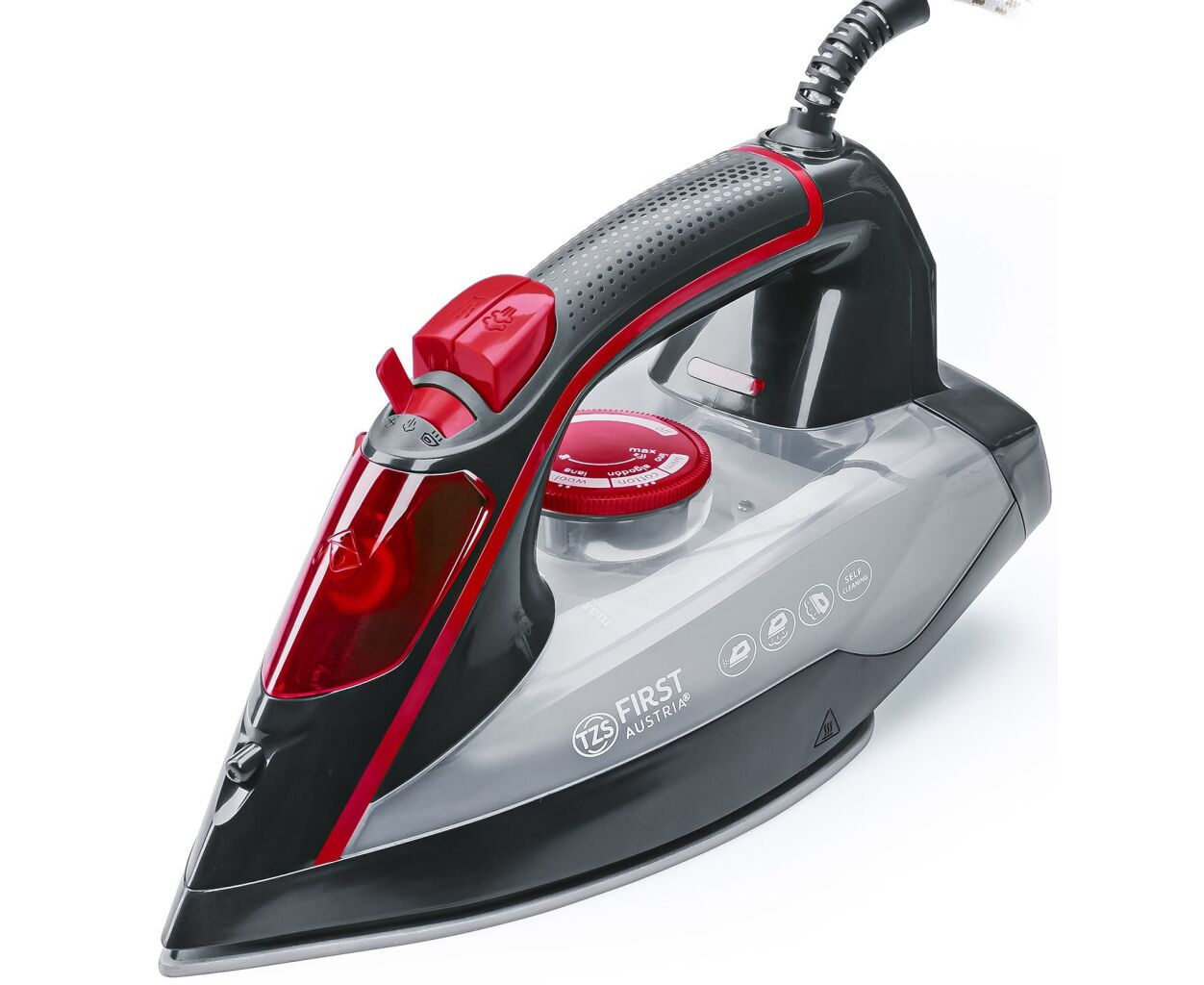 Паровой утюг First FA-5618-6-RE оснащен производительной паровой системой и керамической подошвой. Утюг легко справляется с любыми складками и замятостью уже за один проход. Паровой удар позволяет быстро разгладить вещи из джинса и льна. Для максимального комфорта утюг оснащен длинным шнуром, который не запутывается во время глажки и позволяет дотянуться до любого места на гладильной доске. Мощность 2200 Вт обеспечивает быстрый нагрев подошвы, уже через несколько секунд после включения в сеть утюг готов к работе. Подошва со специальным покрытием легко скользит по любой ткани, не оставляя белых следов и складок. Подошва отличается высокой стойкостью к образованию царапин и потертостей. Носик подошвы имеет заостренную форму, это помогает при проглаживании карманов, рюшей, вытачек, мест вокруг пуговиц. Встроенная функция очистки от накипи позволяет заливать в утюг воду прямо из-под крана. При самоочистке накипь эффективно удаляется с внутренних поверхностей, не оседая на рабочих частях утюга.