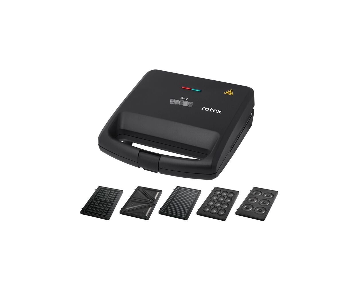 Мультимейкер Rotex RSM225-B – это универсальный прибор для быстрого и удобного приготовления разнообразных блюд на дому. Благодаря мощности 800 Вт, он быстро нагревается и обеспечивает равномерное пропекание продуктов. В комплекте идут съемные пластины 5 в 1 для гриля, сэндвичей, вафель, орехов и пончиков, что позволяет экспериментировать с меню и радовать семью вкусными блюдами каждый день. Антипригарное покрытие пластин гарантирует легкое извлечение готовой пищи и простое очищение после использования.