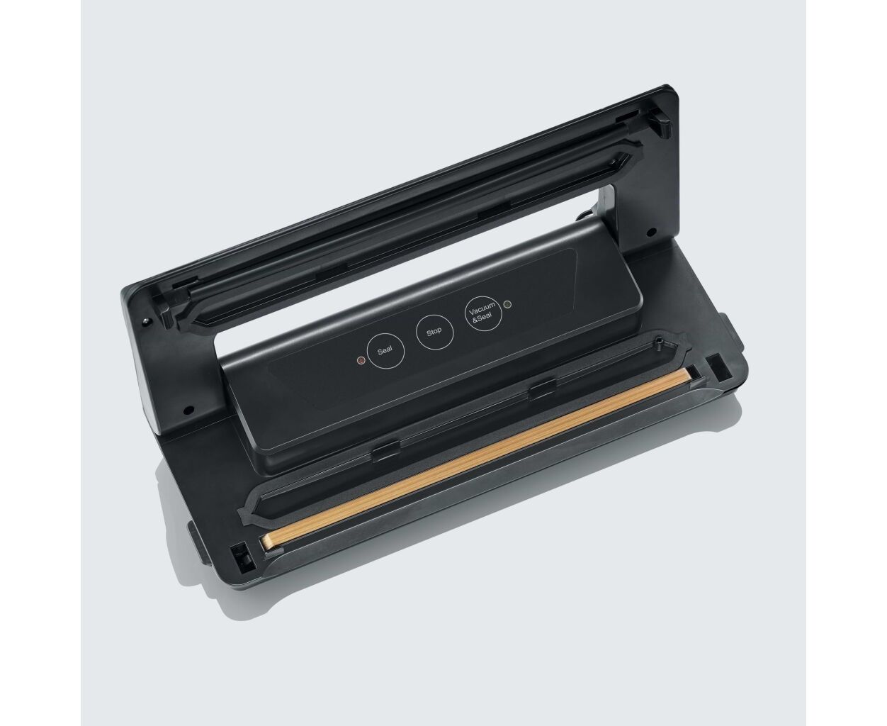 FoodSave: свежесть до 8 раз дольше - особенно для деликатных, легко портящихся продуктов - в морозильной камере без повреждений. Прост в использовании, одно нажатие кнопки - функция One Touch: полностью автоматическое вакуумирование и запечатывание: просто наденьте подготовленный пакет, закройте крышку, нажмите кнопку «Vac & Seal», и готово! Кислород автоматически высасывается из вакуумного мешка, и вакуумный мешок закрывается. Подходит даже для деликатной пищи с функцией «Stop».С помощью кнопки «Стоп» можно регулировать процесс всасывания, чтобы избежать измельчения, повреждения деликатных/мягких, сочных продуктов. Пакеты разных размеров можно изготавливать самостоятельно благодаря встроенному резаку и опциональным вакуумным роликам. Просто отрежьте ножом необходимую длину от рулона и спаяйте одну сторону - индивидуально подобранный пакет готов.