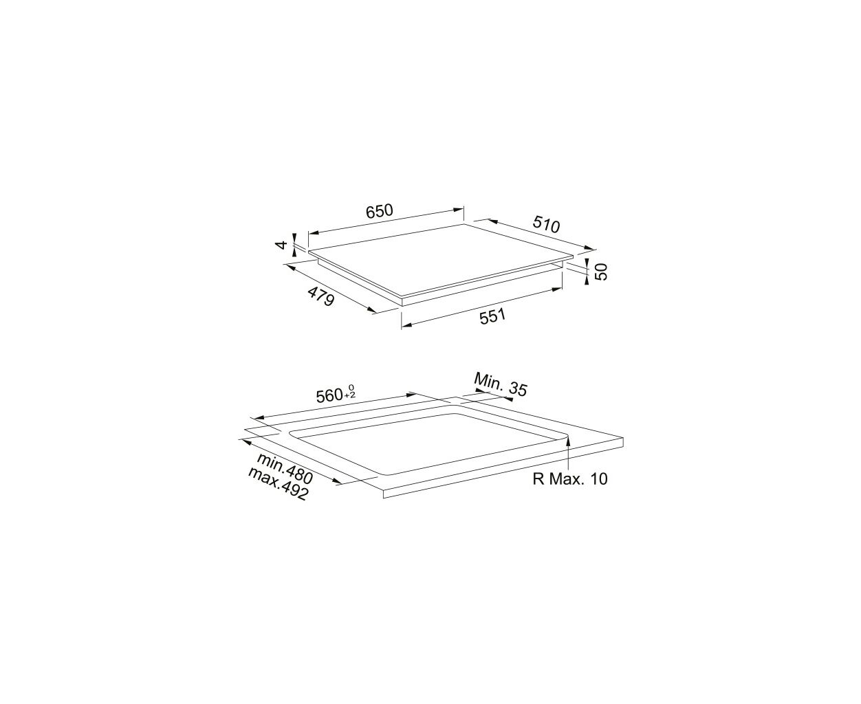 Тип поверхности - электрическая, индукционные, стеклокерамика, количество конфорок - 4, Передняя правая 1.8/2.1 кВт/ 180 мм, Передняя левая 1.2/1.6 кВт/145 мм, Задняя левая 2.1/3 кВт/210 мм, Задняя правая 1.8/2.1 кВт х 180 мм, Управление - сенсорное, 220 В, 230 В, 240 В, Размеры ниши для встраивания - 10 х 56 х 48 - 49.2 см, черный