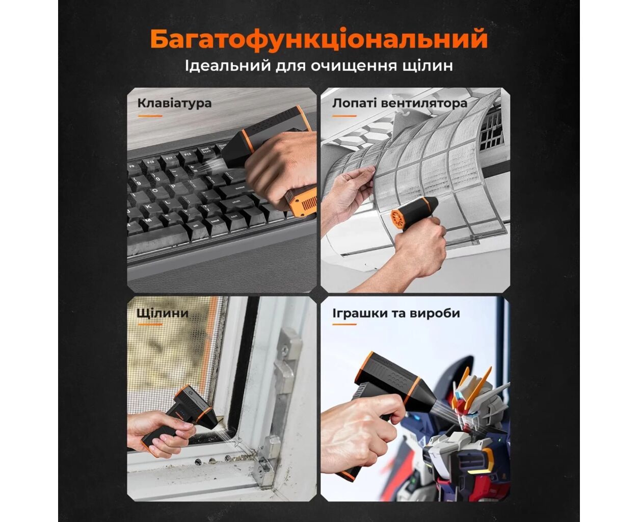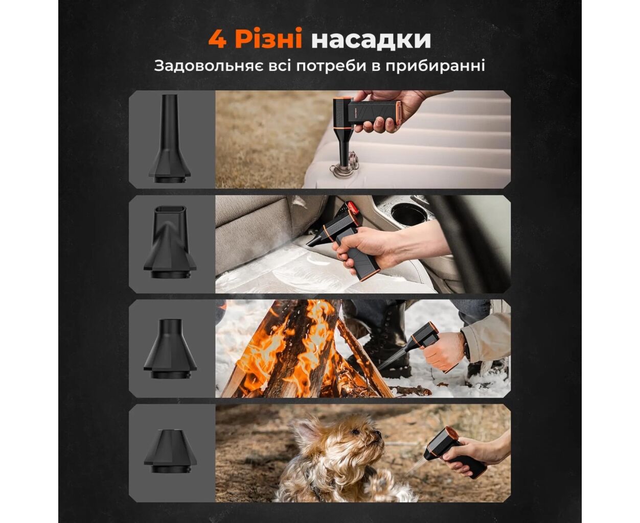 ручной, беслопастный, питание от аккумулятора, насадка для надувания кровати, плоская насадка, длинная насадка, круглая насадка, емкость аккумулятора 5000 mAh, Управление - механическое, 3, пластик, 1600 х 40 х 60 мм, 0.204 кг, черный