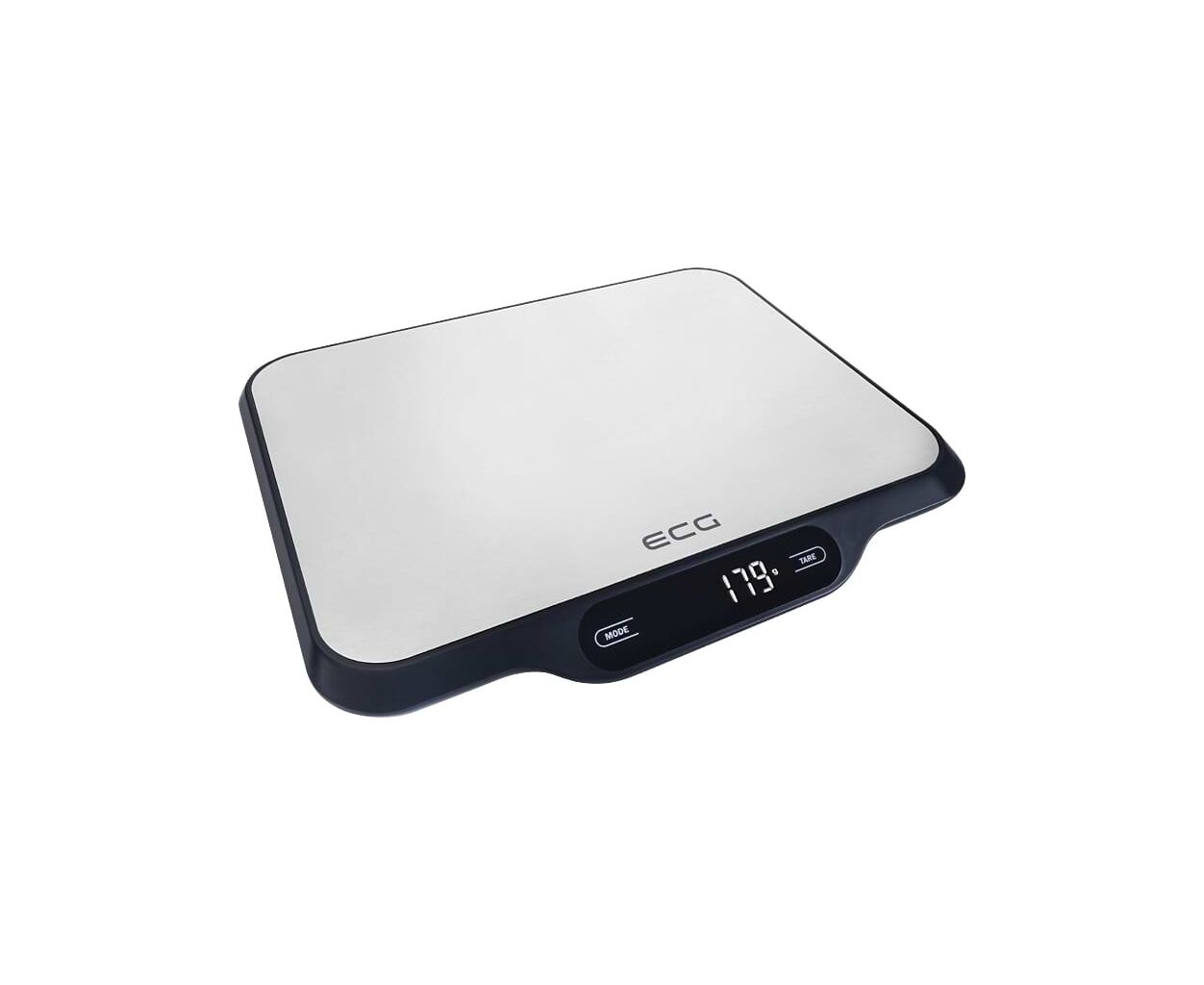 Весы кухонные ECG KV 215 S с максимальной нагрузкой в 15 кг и шагом измерения 1 грамм, оснащены плоской платформой из нержавеющей стали.