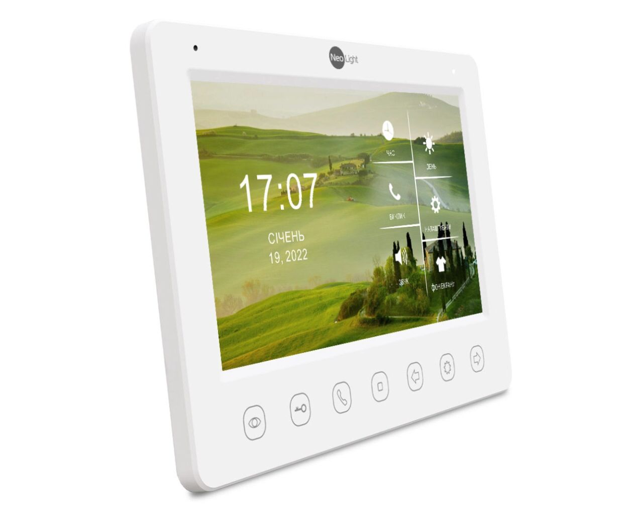 аналоговые домофоны, Система связи - проводная, накладной монтаж, 7", цветной, сенсорные кнопки, 800 х 480, белый