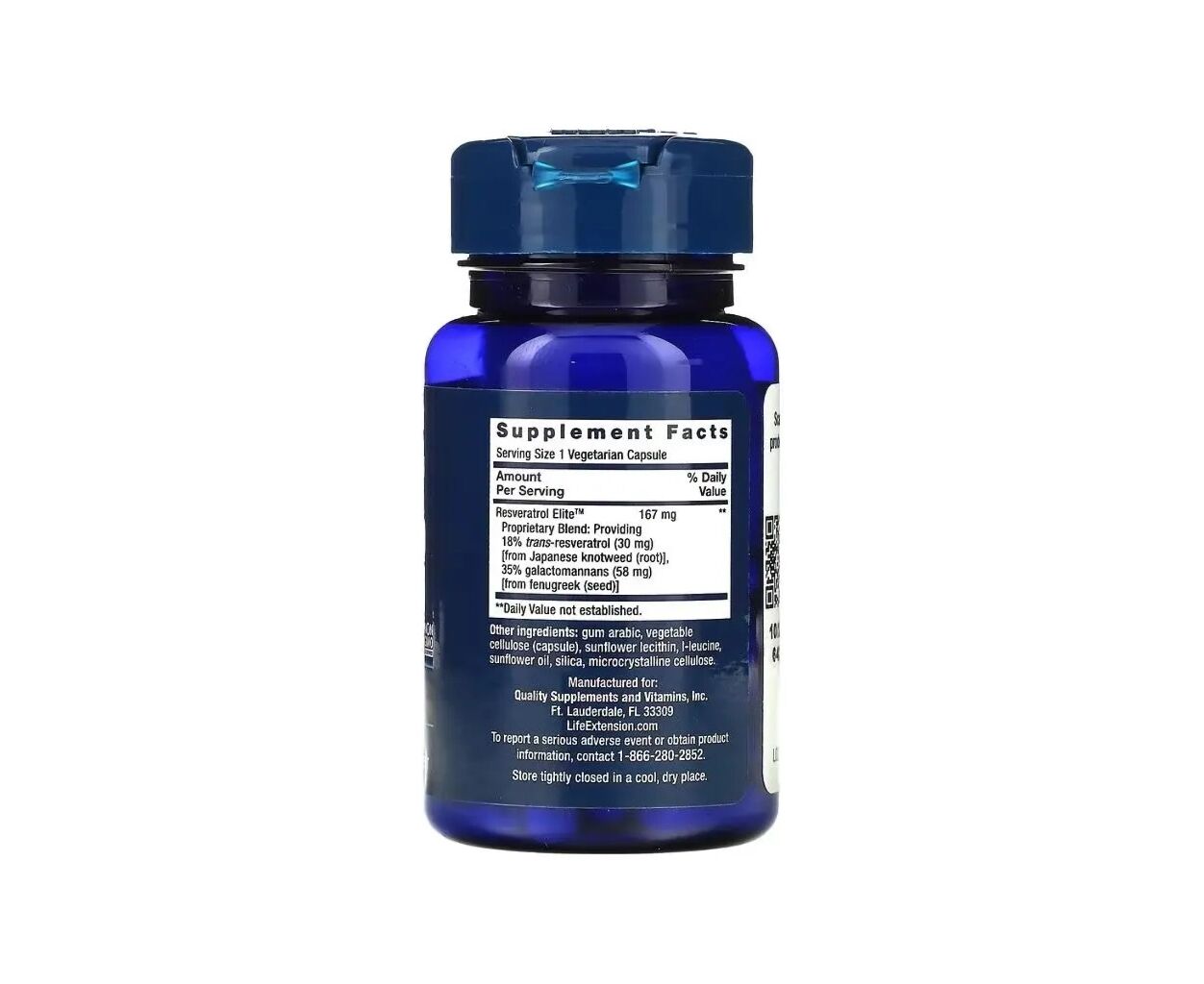 Витаминно-минеральный комплекс Life Extension Ресвератрол, Resveratrol Elite, 30 вегетарианских капсул (LEX-22106)