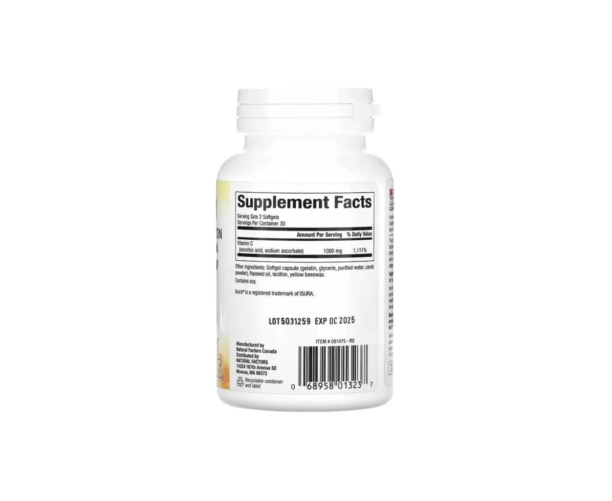 Характеристики Витаминно-минеральный комплекс Natural Factors Витамин С липосомальный, 1000 мг, Liposomal Vitamin C, 60 гелевых к (NFS-01323)