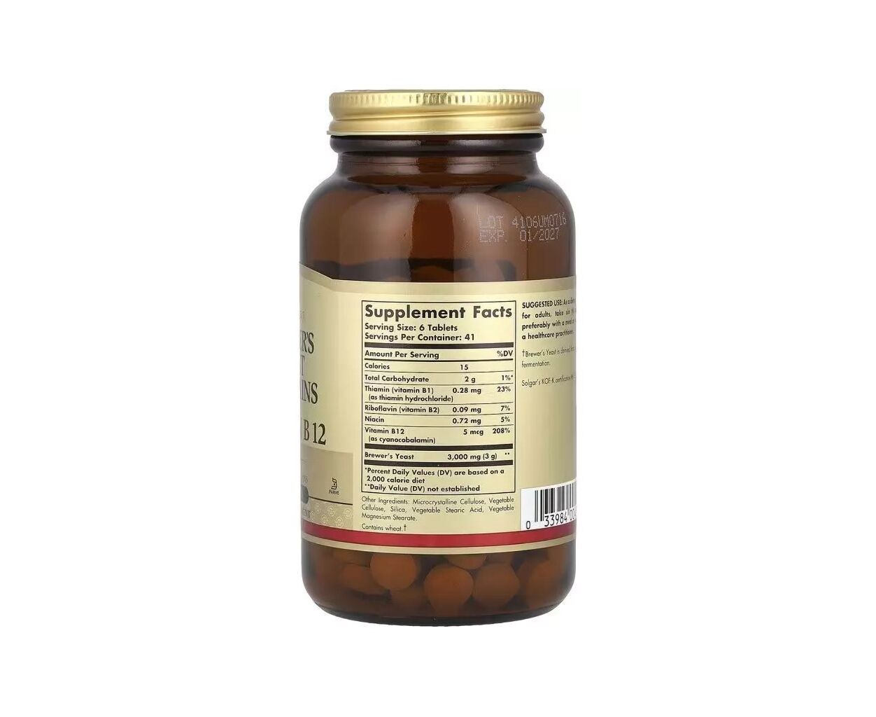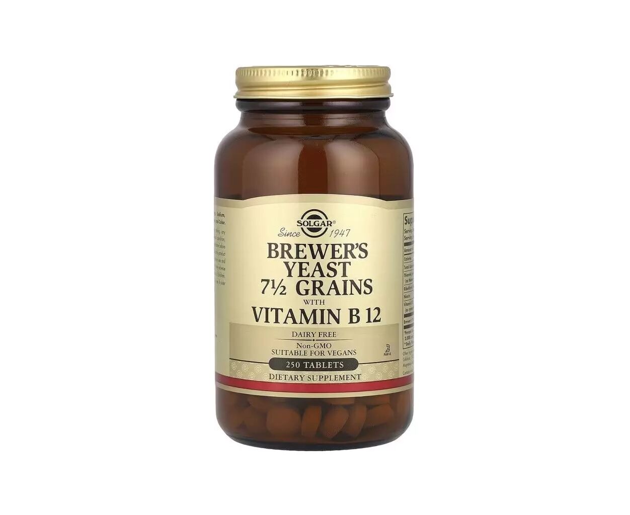 Характеристики Витаминно-минеральный комплекс Solgar Пивные дрожжи с витамином B12, Brewer''s Yeast, 7 1/2 Grains with Vitamin B12, (SOL-00400)