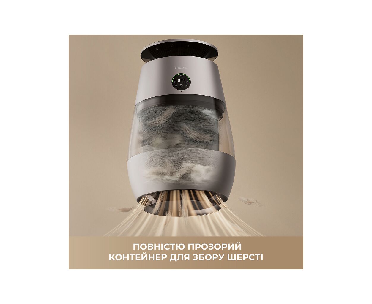 HEPA фильтр, угольный фильтр, фильтр предварительной очистки, ионизация, очистка, универсальный, напольный, 48 м², 65 Вт, электронный, 430 м³/час, 66 дБ, бежевый