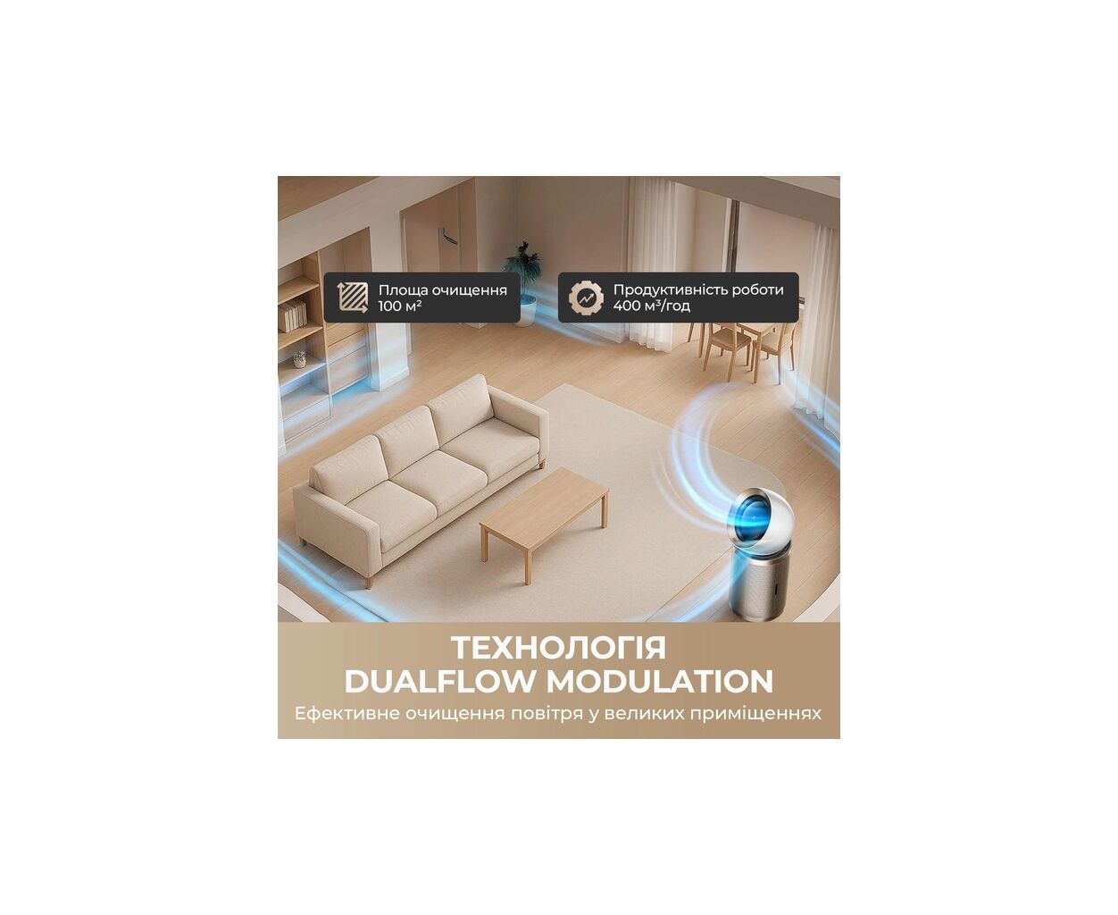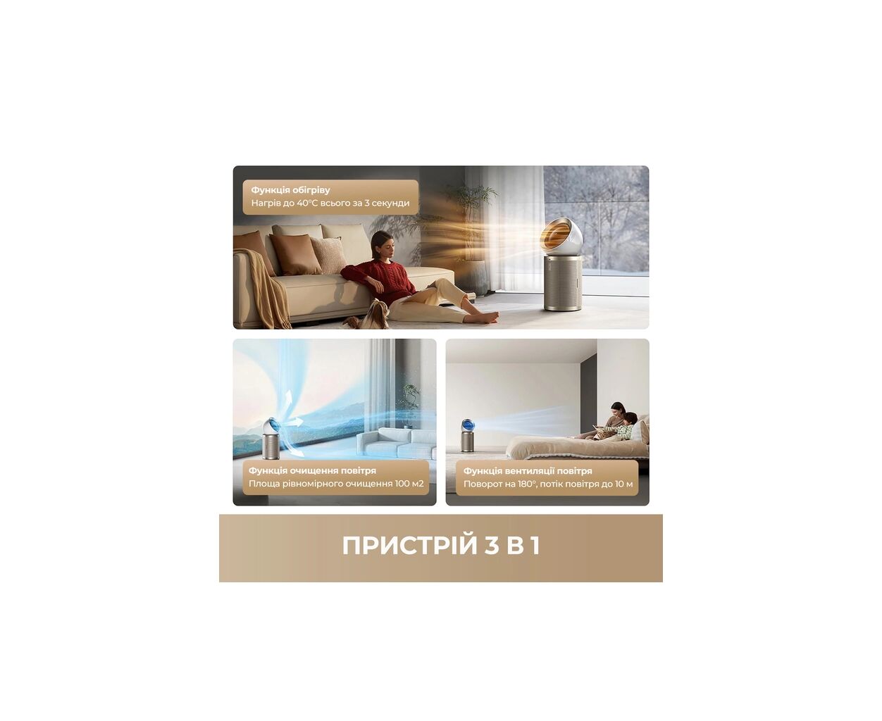 HEPA фильтр, угольный фильтр, фильтр предварительной очистки, нагрев воздуха, охлаждение, очистка, универсальный, напольный, 48 м², 33 Вт, электронный, Smart управление, 400 мл/ч, 60 дБ, бежевый