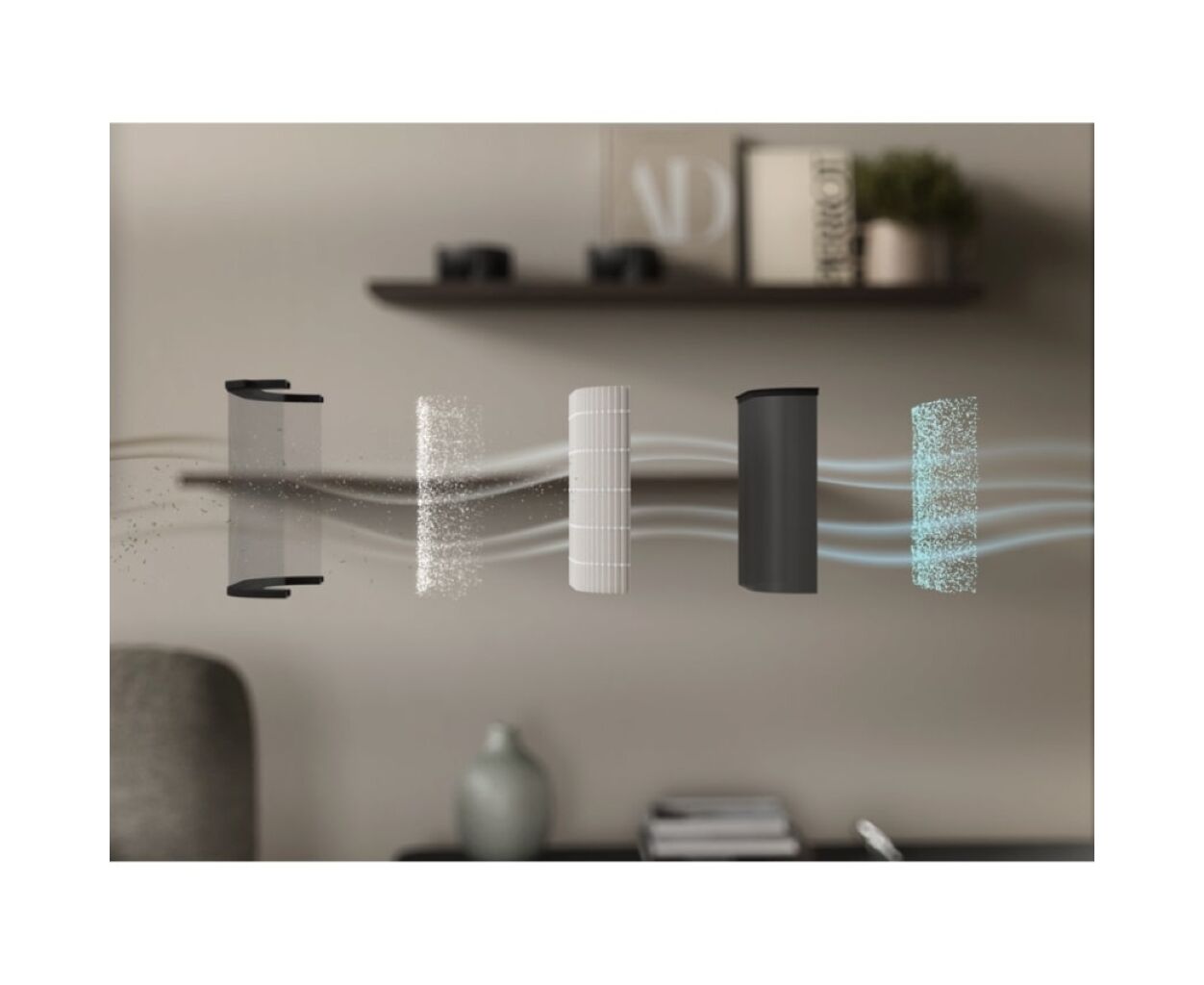HEPA фильтр, угольный фильтр, фильтр предварительной очистки, ионизация, очистка, для дома, напольный, 145 м², 50 Вт, сенсорный, 700 м³/гчас, 16.4 дБ, темно-серый
