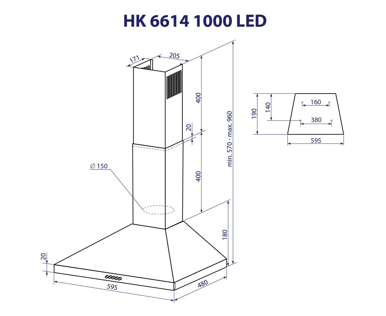 Тип - купольная, настенная, 1000 м3/час, 130 Вт, отвод воздуха и рециркуляция, ширина корпуса - 59.5 см, Диаметр вентиляционной трубы - 150 мм, Фильтры - алюминиевый, Тип управления - кнопочное, Материал корпуса - металл, Лампы - LED 1х2 Вт, 47 - 55 дБ, 570-960 х 595 х 480 мм, 4.8 кг, белый