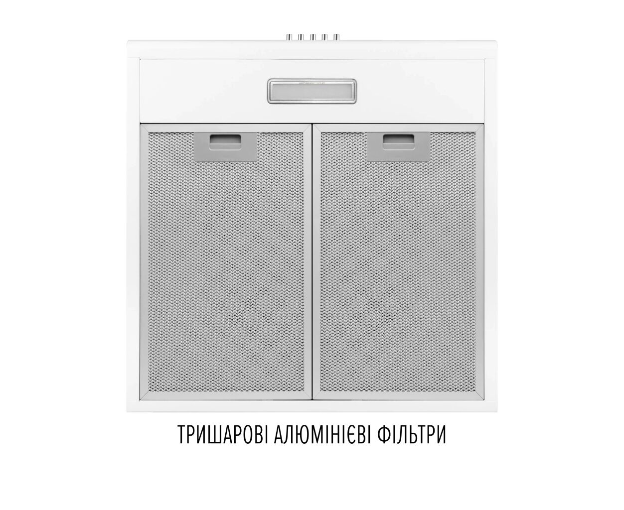 Тип - плоская, настенная, 550 м3/час, 100 Вт, 2, отвод воздуха и рециркуляция, ширина корпуса - 50 см, Фильтры - алюминиевый, Тип управления - механическое, Материал корпуса - крашеный метал, Лампы - LED 1х2 Вт, 52 Дб, 100 х 600 х 500 мм, 4.3 кг, белый