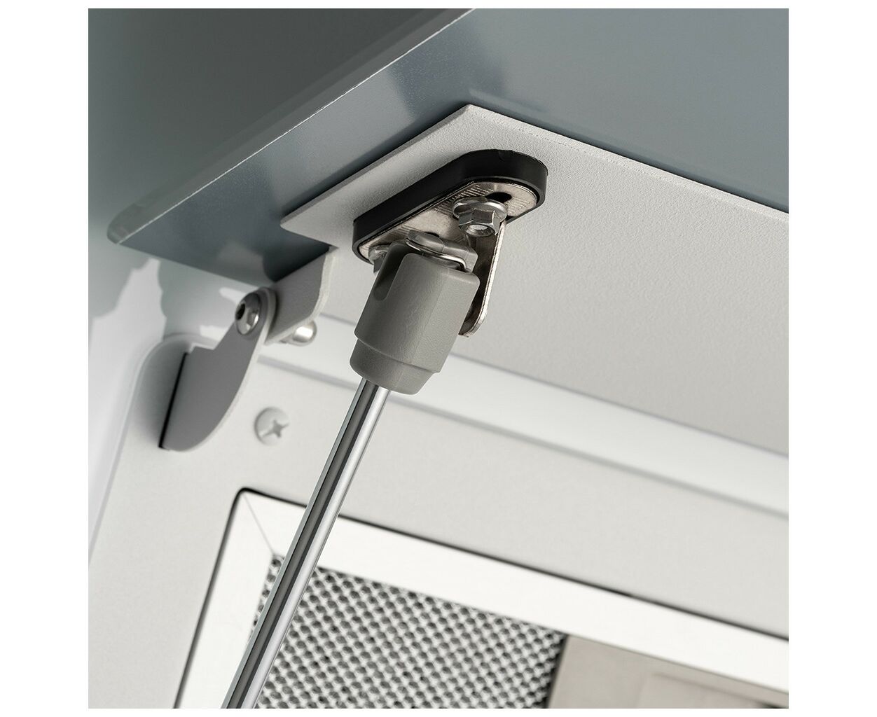 Вытяжка может работать в режиме отвода воздуха или в режиме рециркуляции. В первом случае воздух, проходя через пятислойный жировой фильтр, очищается и полностью удаляется в воздуховод. При активации рециркуляционного режима воздух проходит через угольный фильтр и уже очищенным возвращается на кухню.