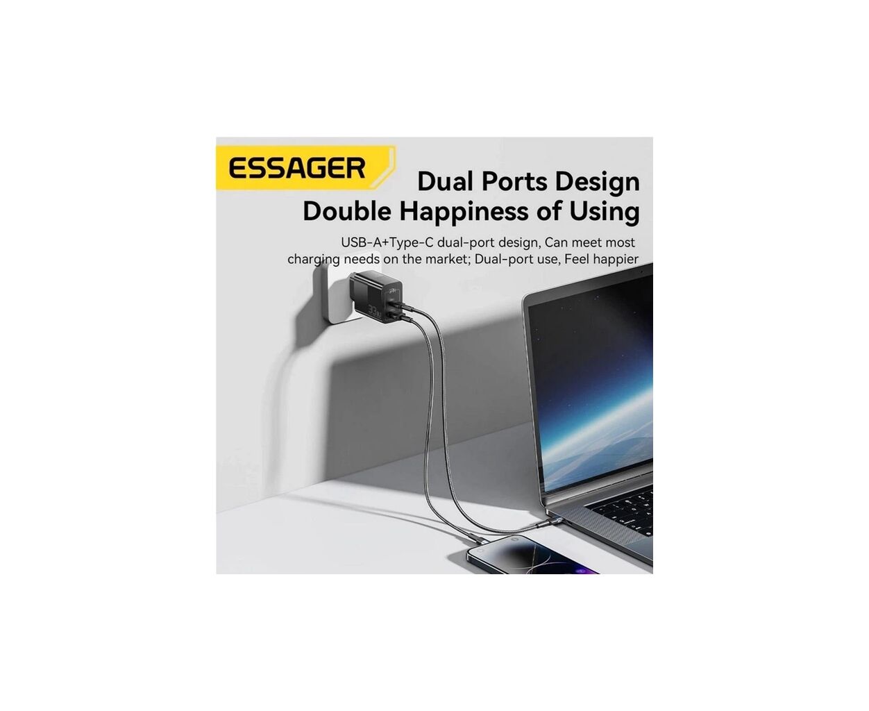 - Безопасность: Встроенный чип Smart IC защитит Essager 33W и подключенные к нему устройства от скачков напряжения, перегрева, короткого замыкания и чрезмерной зарядки.