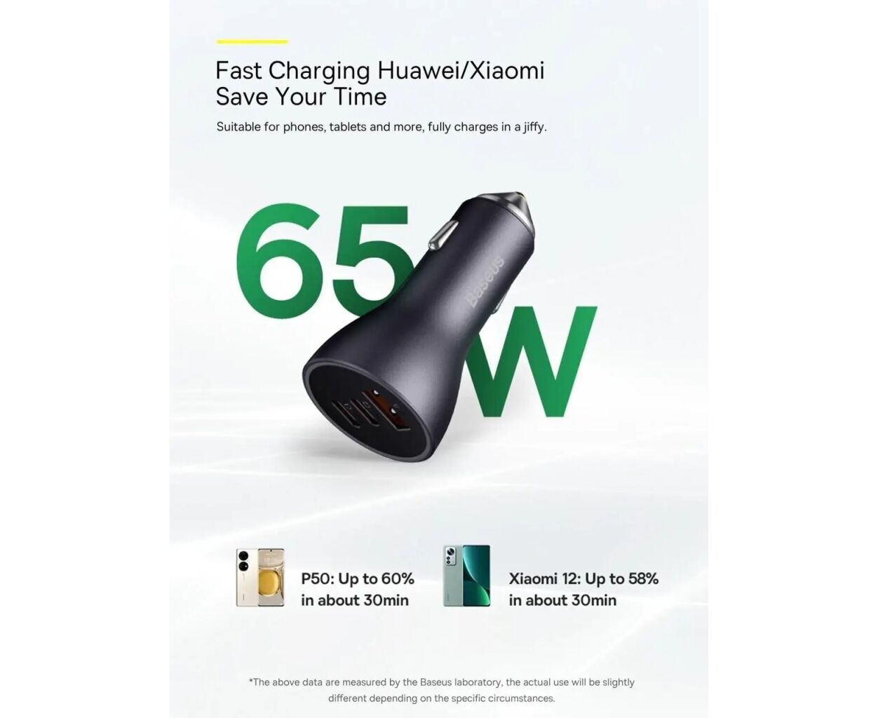 Зарядное устройство Baseus Golden Contactor Pro темно-серого цвета - это идеальный выбор для автомобилистов, которые ценят качество и эффективность. Оснащённый тремя выходными портами - двумя USB-C и одним USB-A - этот универсальный адаптер питания обеспечивает максимальную выходную мощность 65 Вт, позволяя быстро заряжать сразу несколько устройств. Благодаря поддержке протоколов быстрой зарядки, таких как Quick Charge 4.0+, Quick Charge 3.0 и Power Delivery 3.0, каждый ваш гаджет будет обеспечен необходимым уровнем энергии в кратчайший срок.