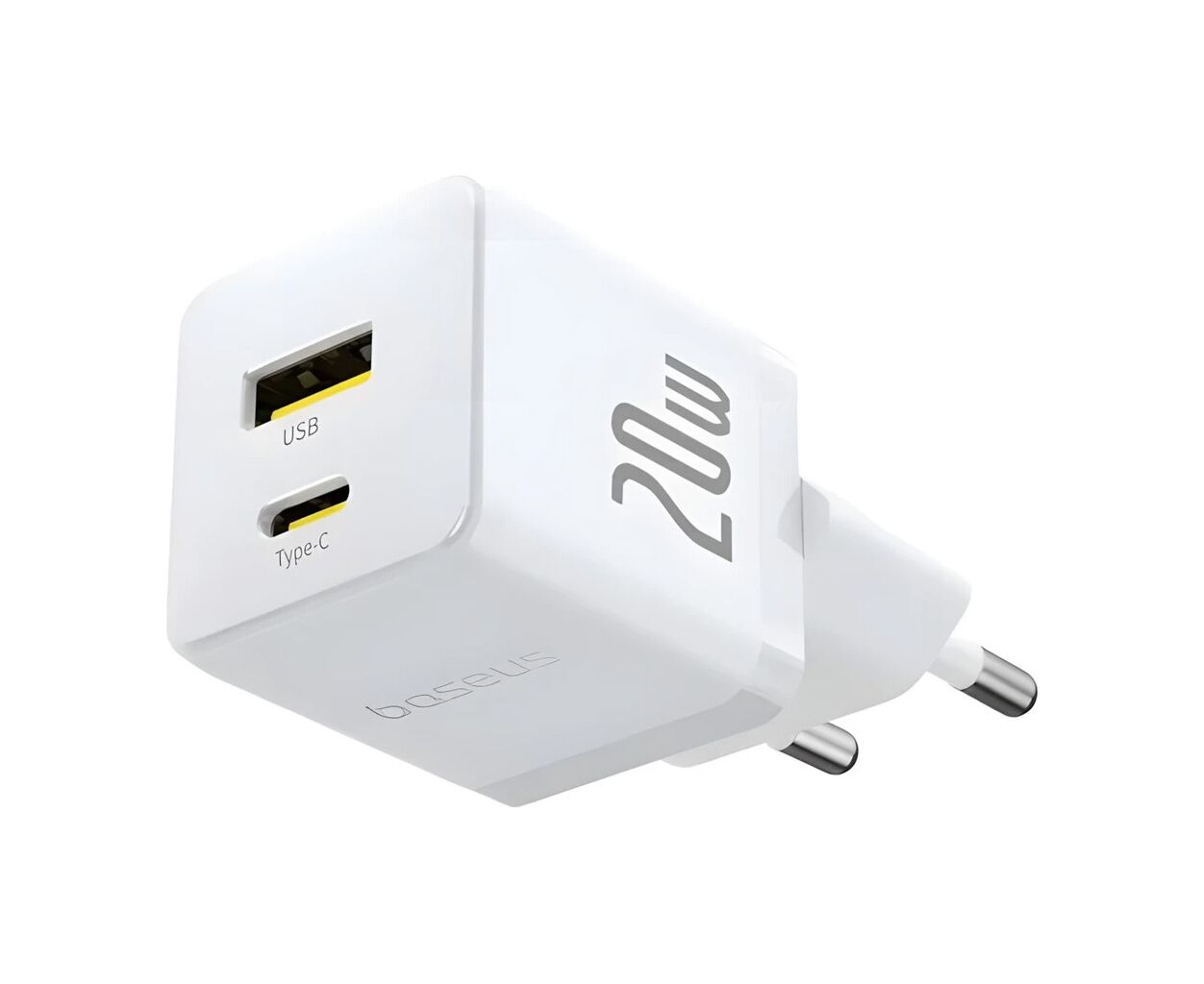 Зарядное устройство Baseus 1xUSB-C 20W + 1xUSB white + cable USB-C to USB-C 60W 1.0m (P10111608213-01)