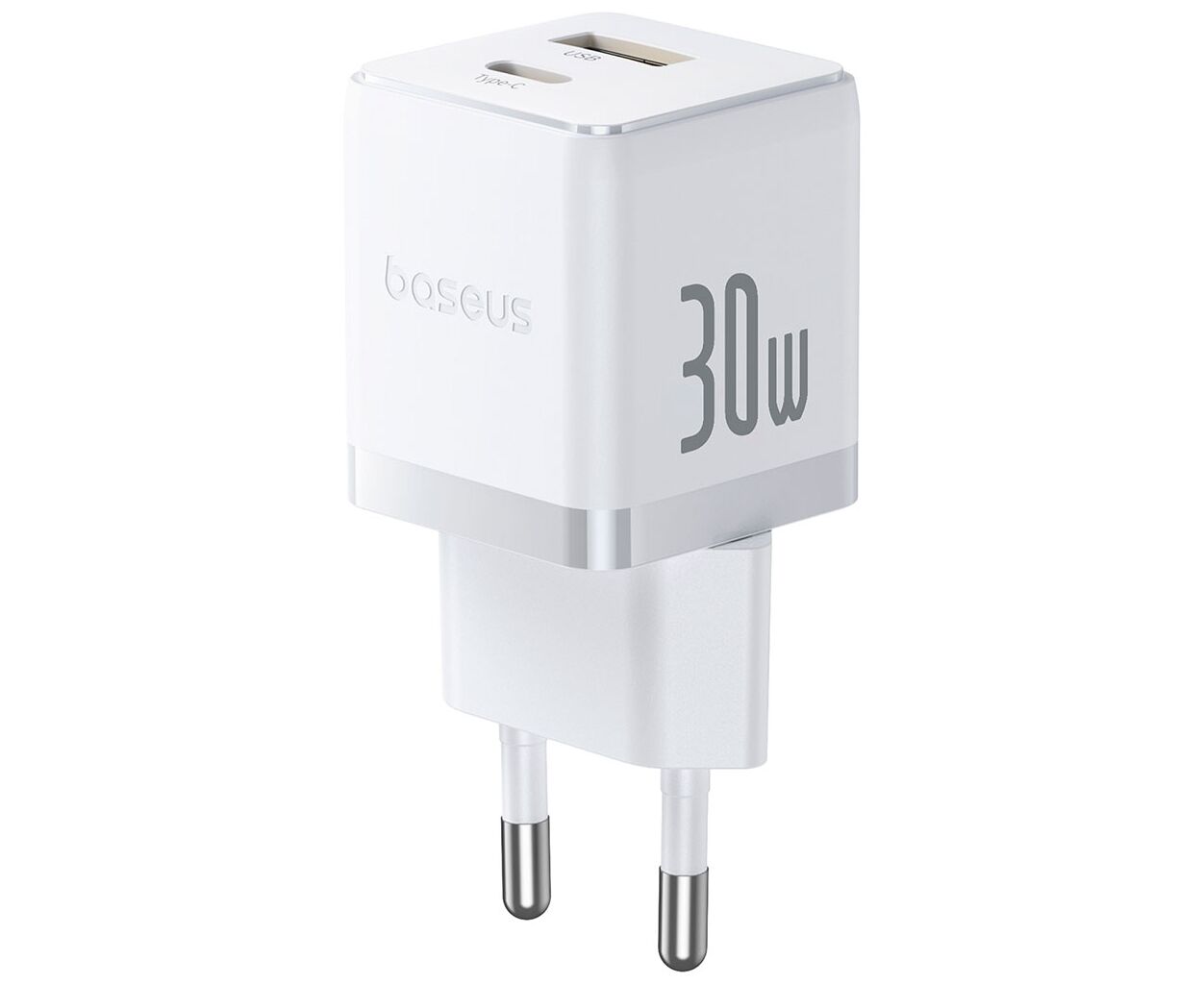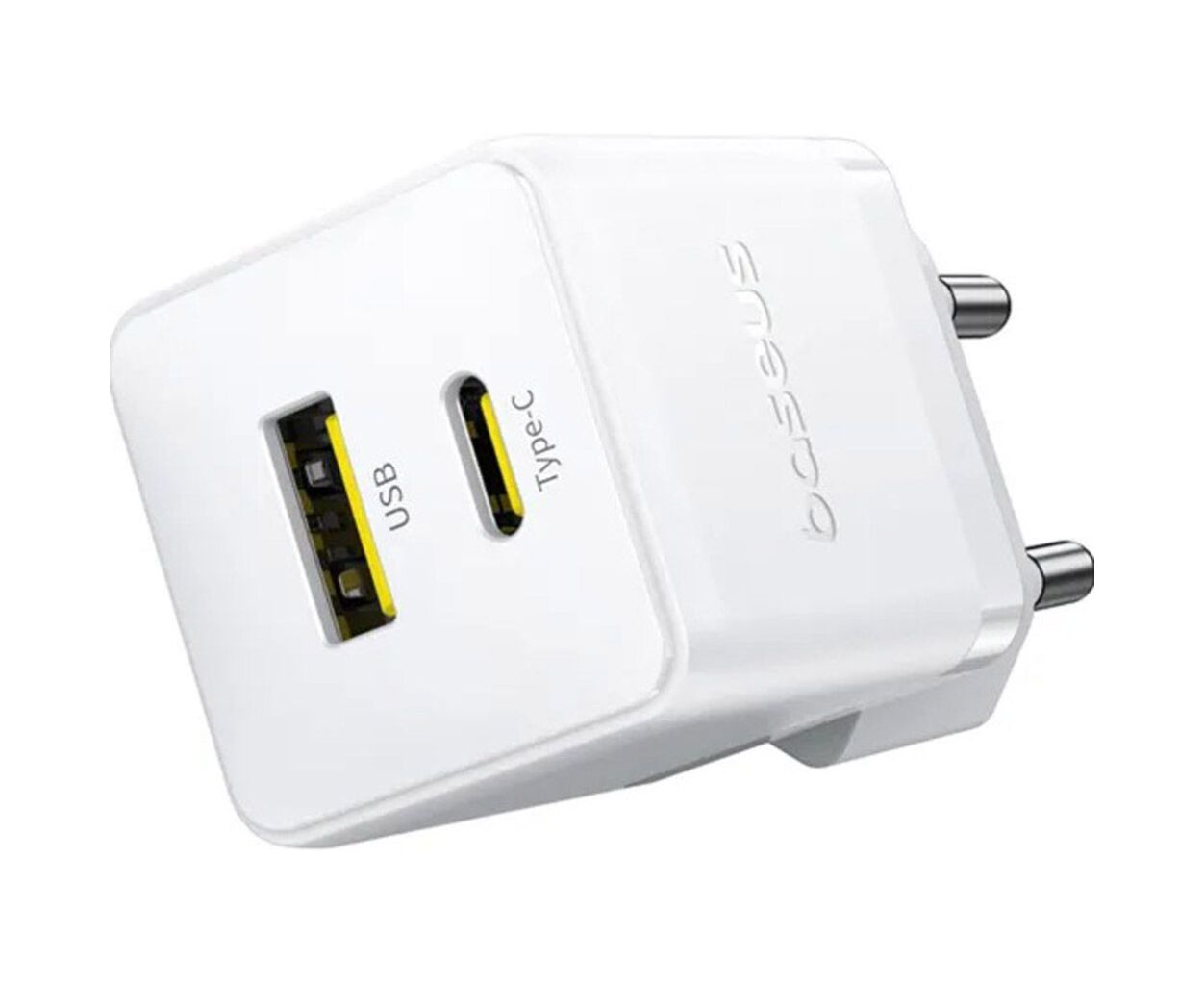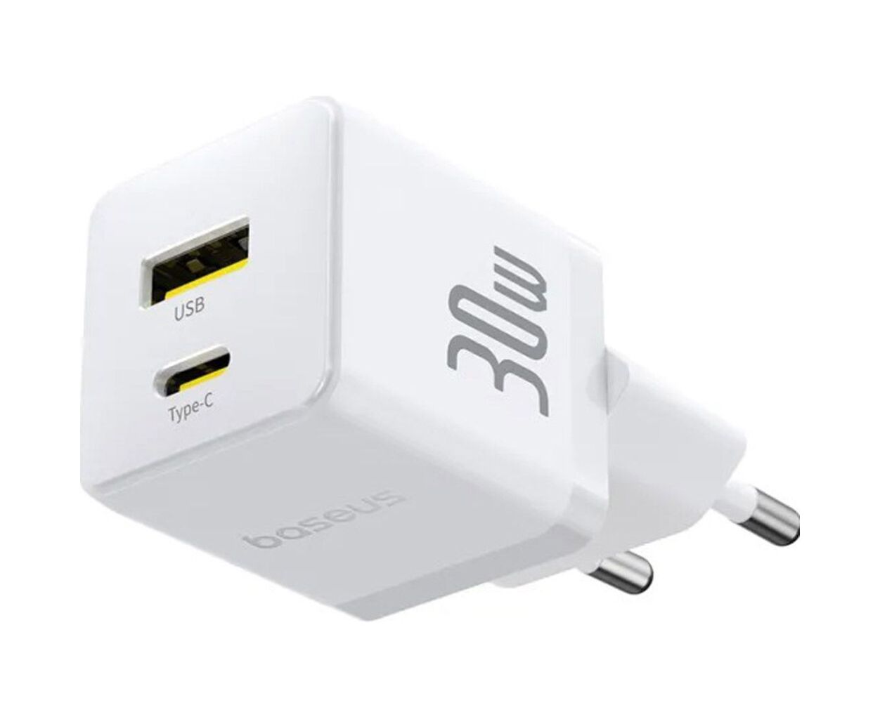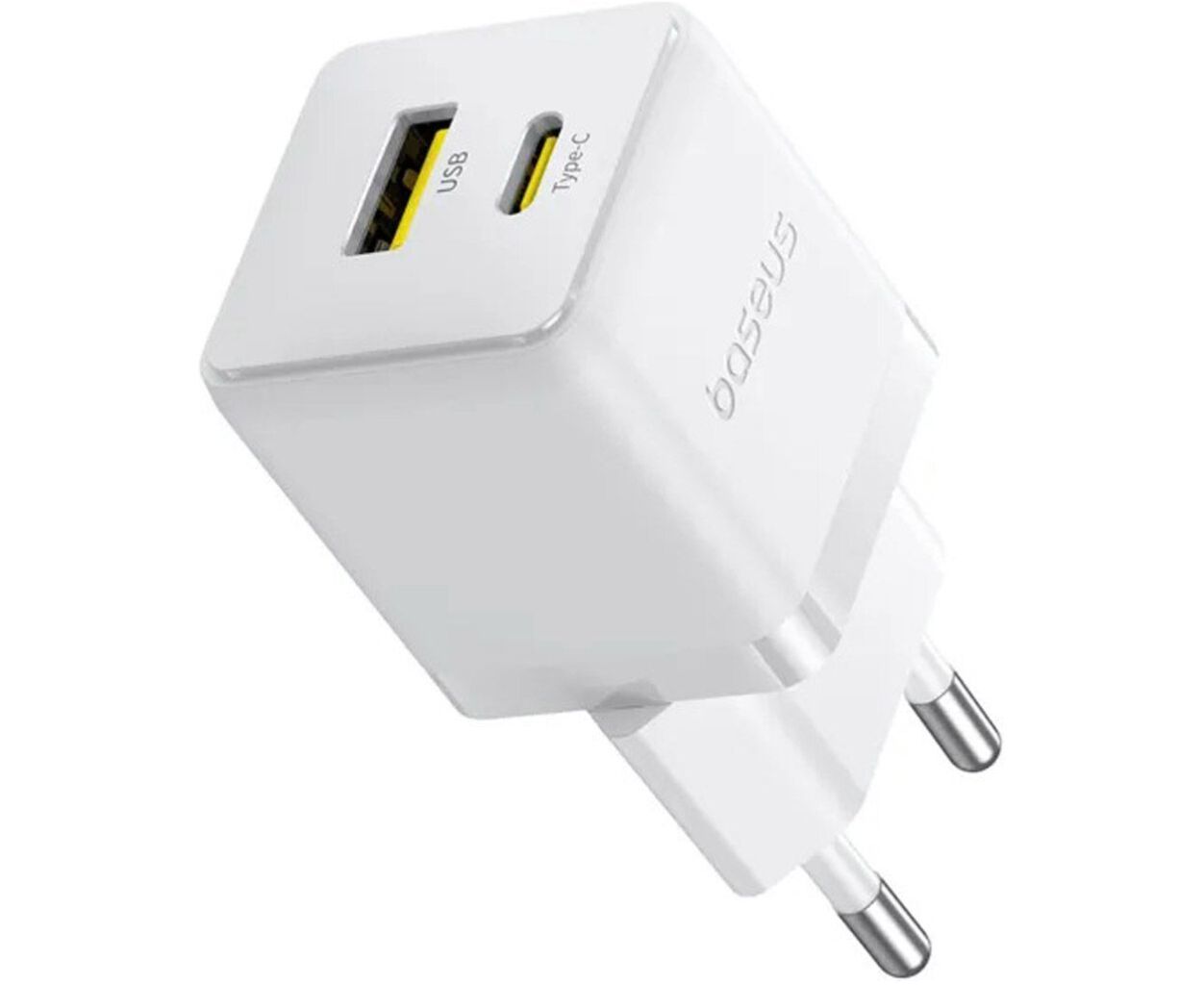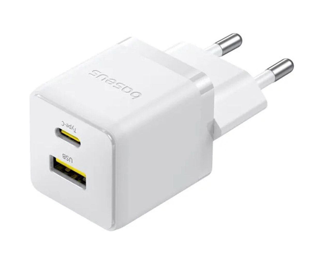 Зарядное устройство Baseus 1xUSB-C 30W + 1xUSB white (P1011160A213-00)