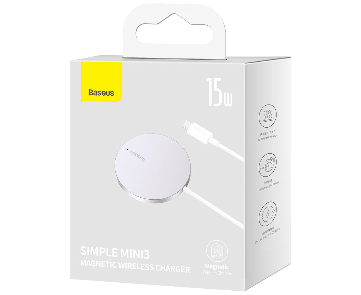 Зарядное устройство Baseus Simple Mini3 Magnetic Wireless Charger 15W Silver (CCJJ040012) — это сочетание передовых технологий и элегантного дизайна, созданное для максимально комфортной беспроводной зарядки ваших устройств. Оснащенный встроенным магнитом, это зарядное устройство идеально подходит для владельцев iPhone серий 12, 13 и 14, обеспечивая надежное крепление и эффективную зарядку на уровне MagSafe.
