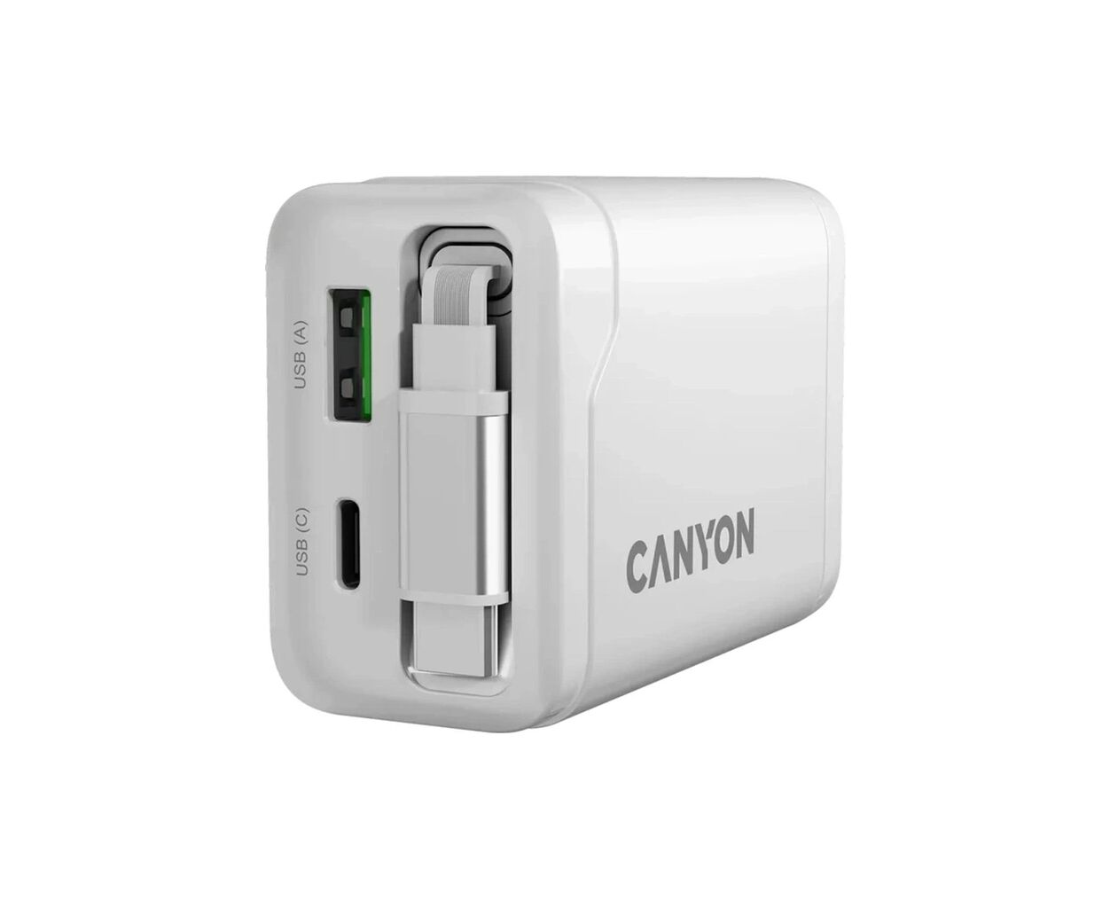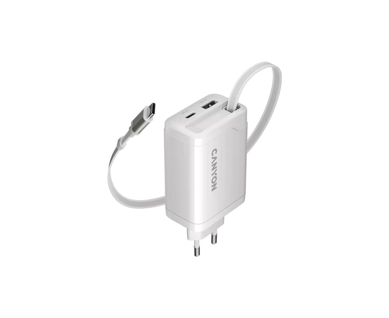 Описание Зарядное устройство Canyon 1xUSB-C PD65W + 1xUSB QC3.0 + cable USB-C to USB-C white (CNS-CURC65ACW)