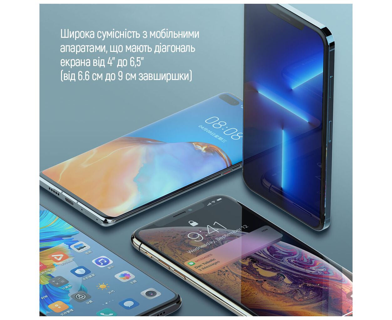 - диагональ экрана от 4" до 6,5" (от 7.3 см до 9.5 см в ширину)