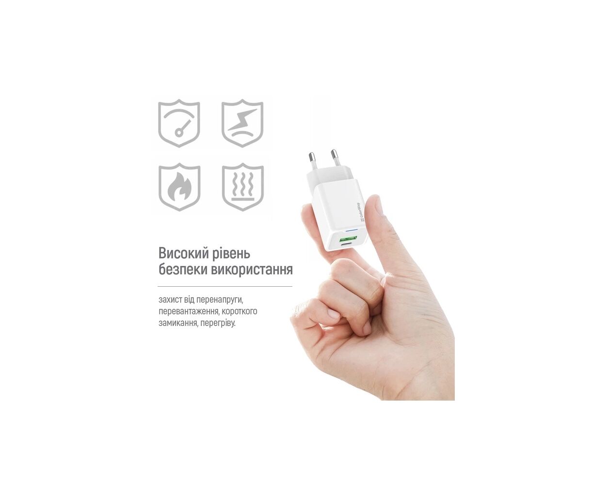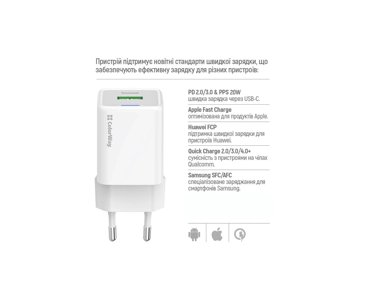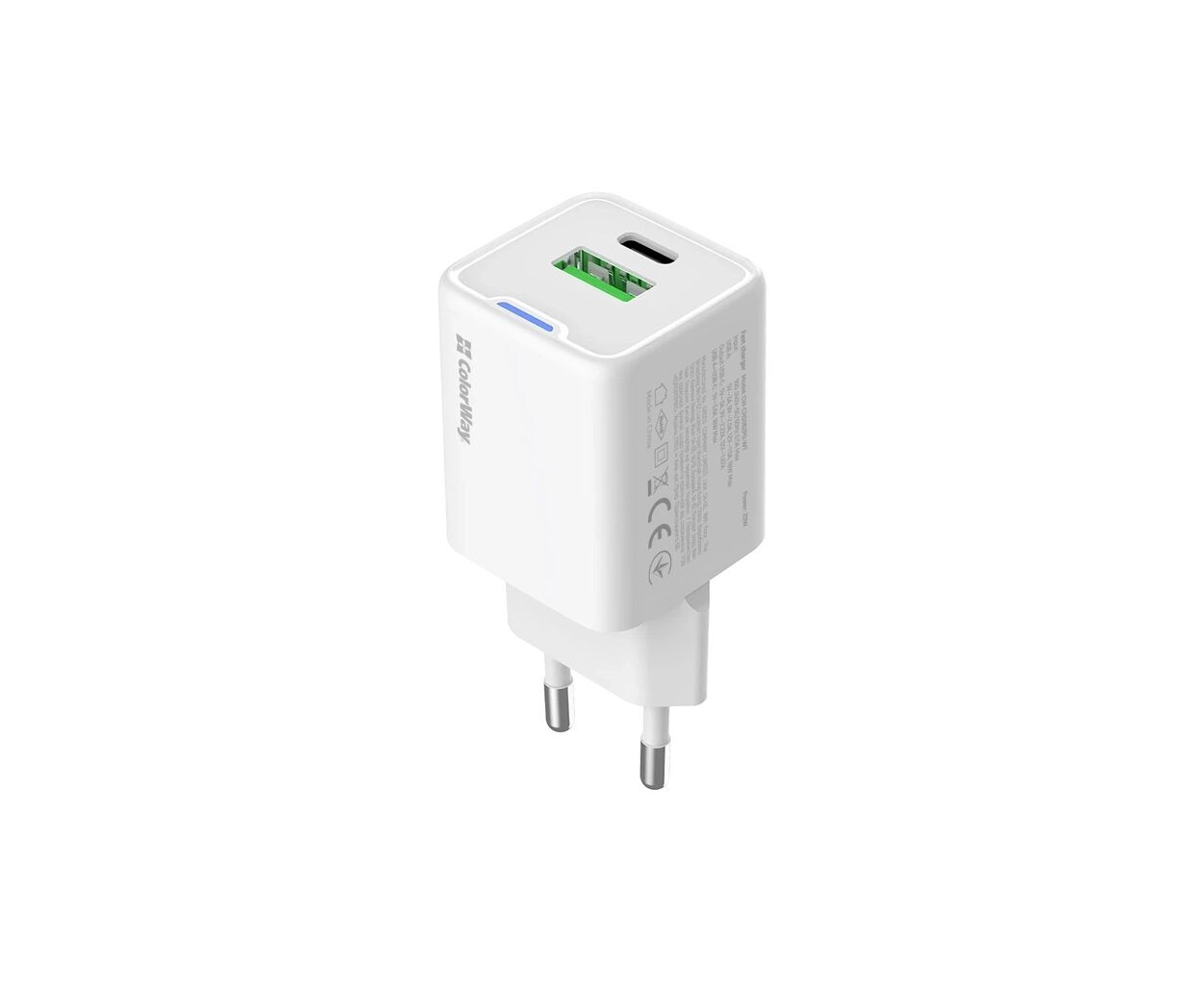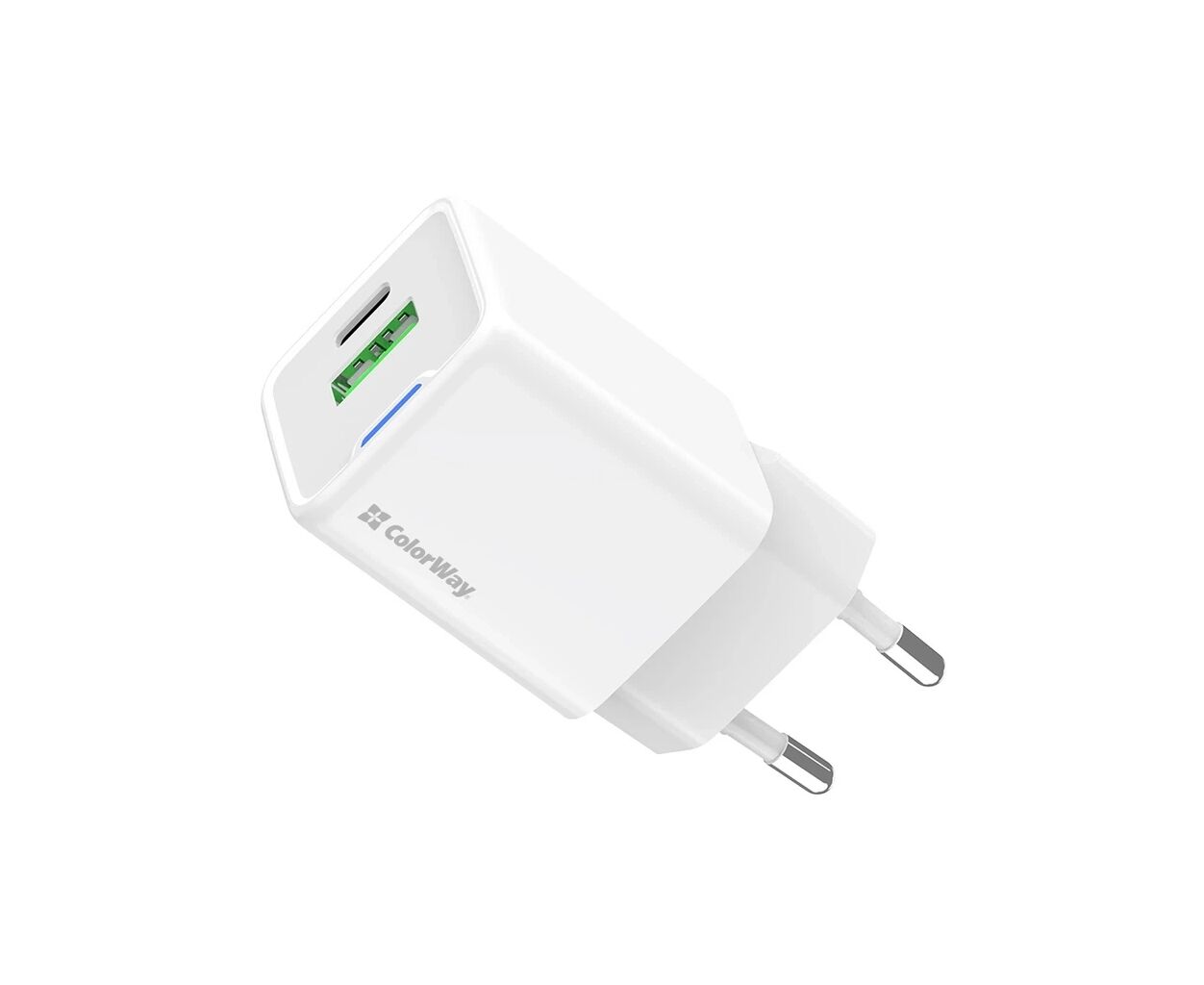 Описание Зарядное устройство ColorWay USB-C PD20W + 1xUSB QC4.0 white (CW-CHS062PD-WT)