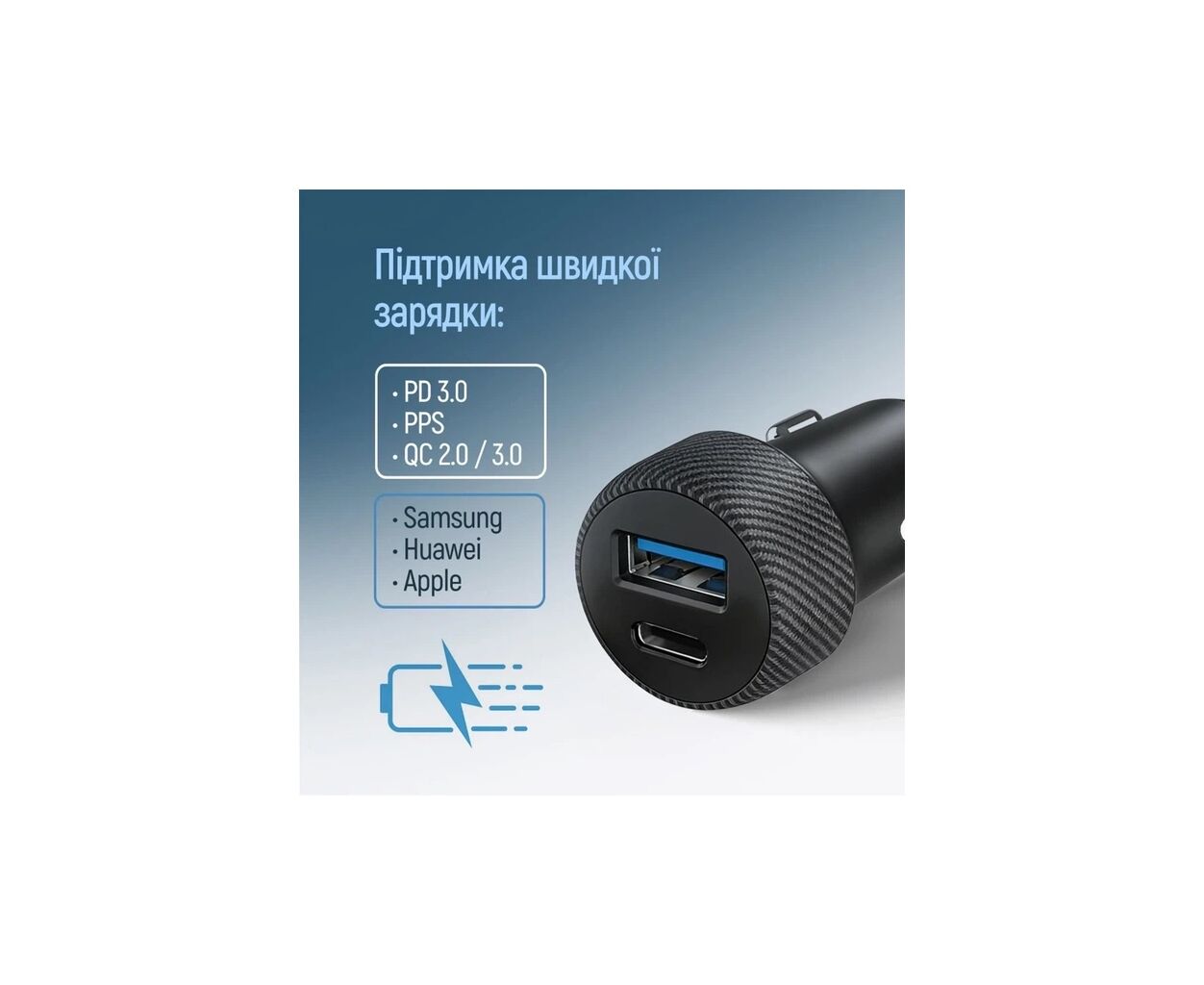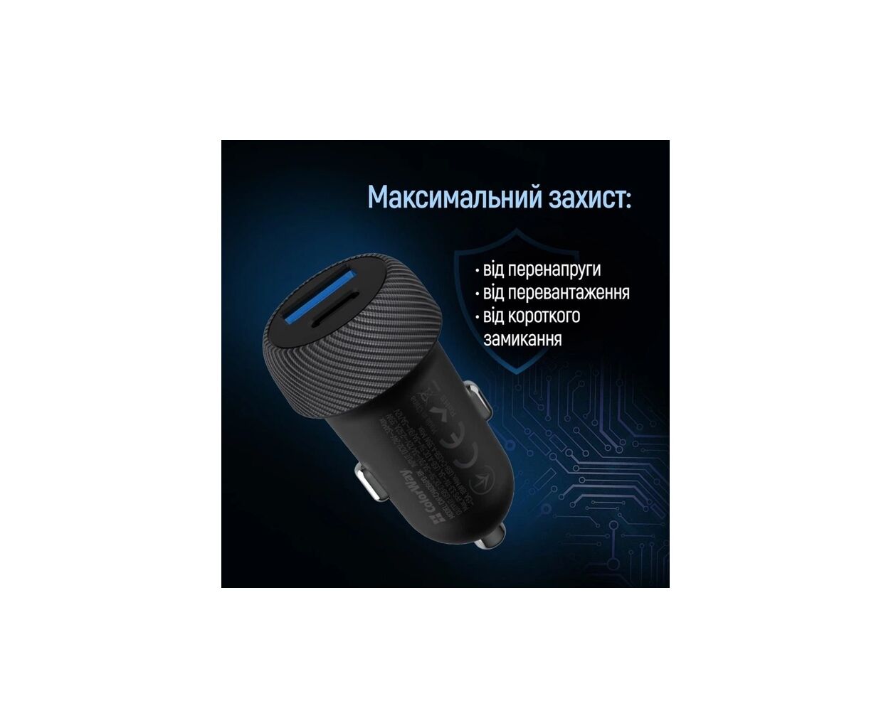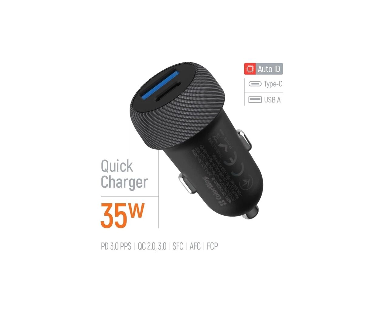 Характеристики Зарядное устройство ColorWay USB-C PD35W + USB QC3.0 car adapter (CW-CHA064PD-BK)