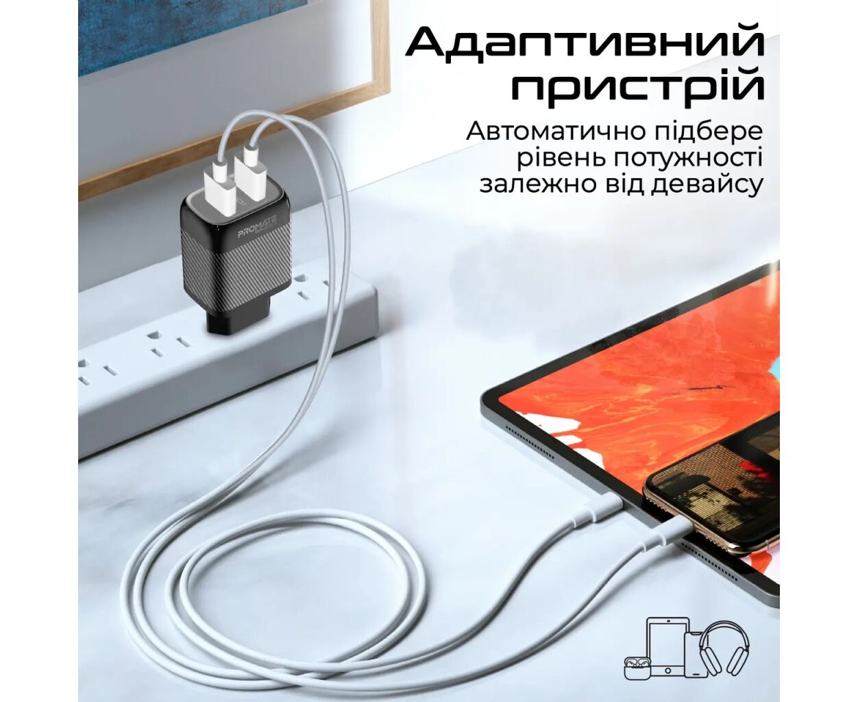 Зарядное устройство Promate biplug-qc3.eu-bk