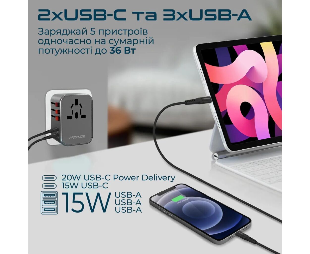 Характеристики Зарядное устройство Promate tripmate-36w.black