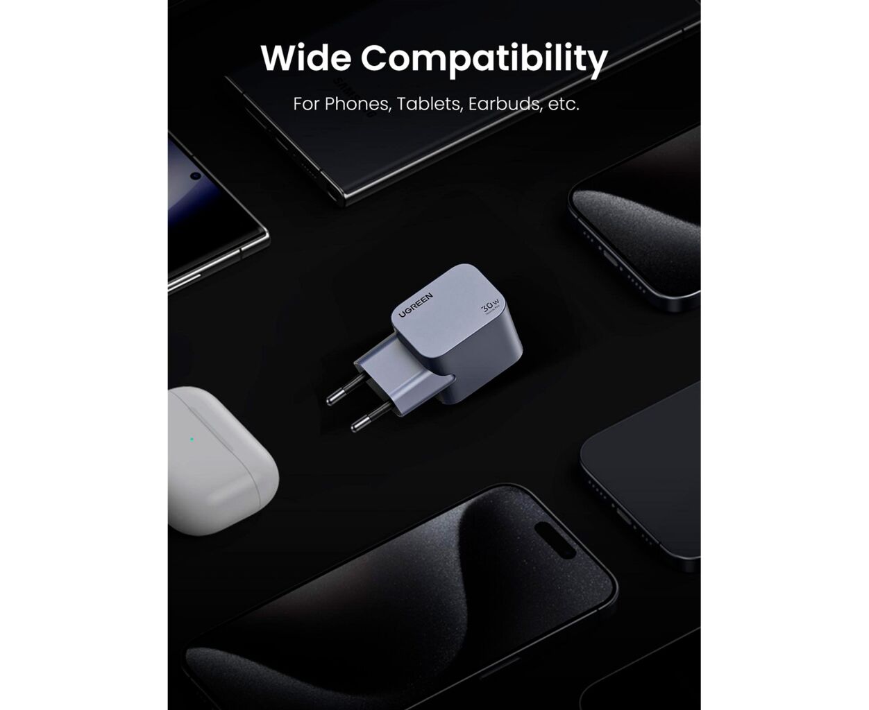 Характеристики Зарядное устройство UGREEN USB-C PD30W GaN X703 gray (35006)
