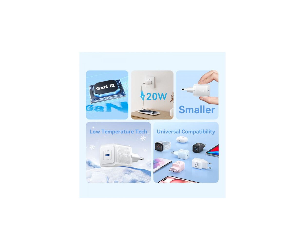 Характеристики Зарядное устройство VENTION 1xUSB-C PD20W white (FEPW0-EU)