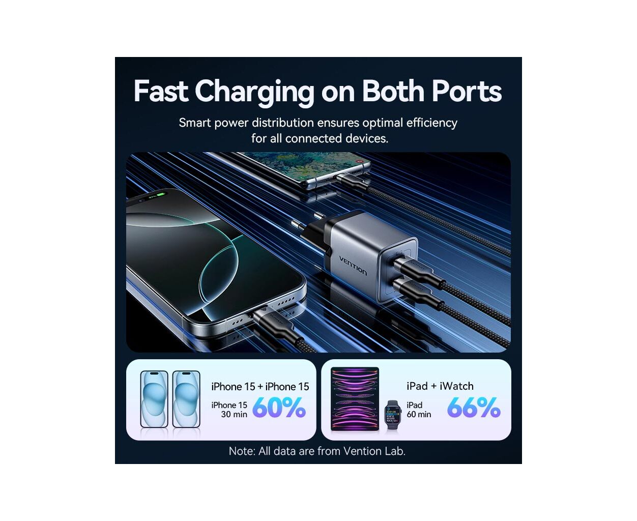 Компактный дизайн и высокая эффективность делают это зарядное устройство незаменимым помощником в повседневной жизни современного человека. Благодаря VENTION вы получаете максимум от каждого подключенного устройства.