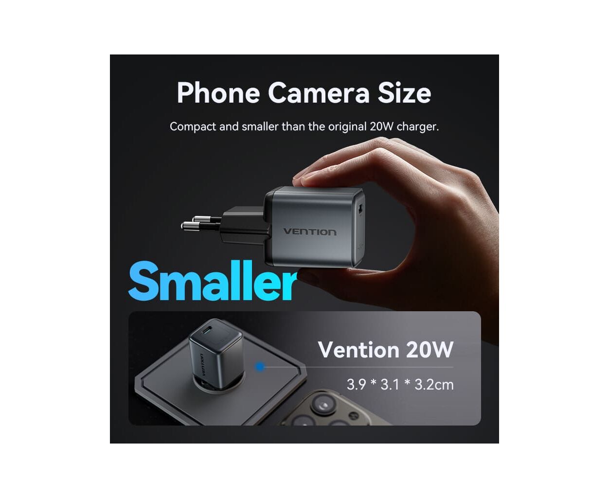 Описание Зарядное устройство Vention USB-C PD20W GaN gray (FEVH0-EU)