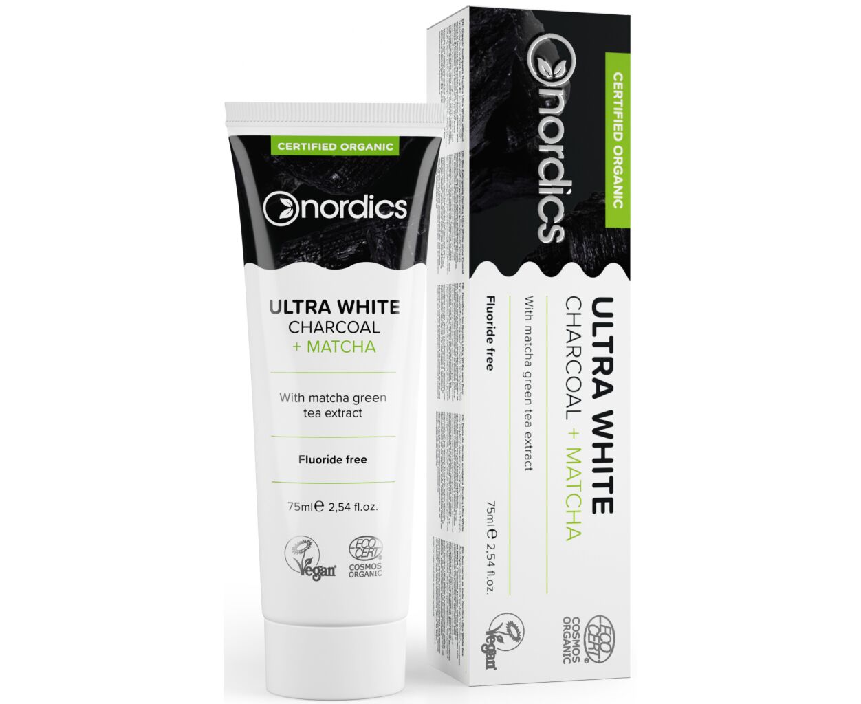 Зубная паста Nordics Ultra White Натуральная реминерализующая с "жидкой эмалью" и активированным углем 75 мл (3800500324180)